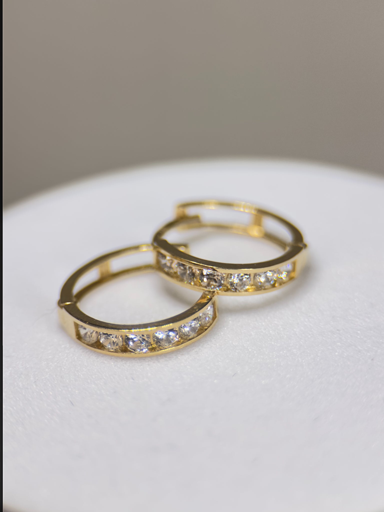 DR2429 - 14K Yellow Gold - Lab Created Stones - 14K Yellow Gold Huggies - Hoop w/drop